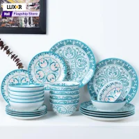 A charming set to brighten your mood every time you sit down to eat with your loved ones. According to saying a family that eats together stays together, and what better way to strengthen the bond than to bring a grin to the table. Vintage floral teal ceramic dinner set-24 pcs