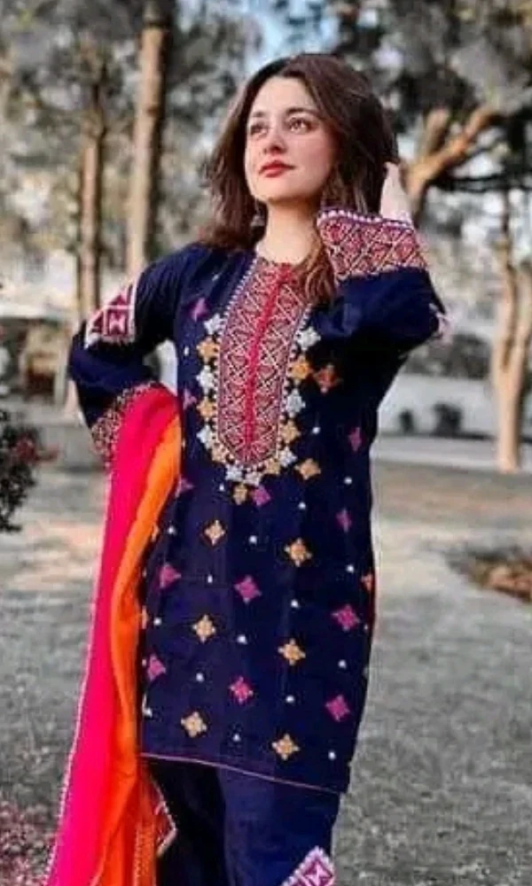 Buy 3PC Embroidered Shirt with Organza Embroidered Dupatta (D) in Pakistan at best price. Original product with fast delivery available.
