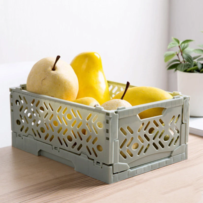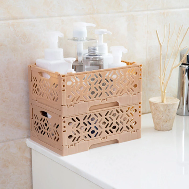 Foldable and stackable desktop storage basket, small size after folding, can be placed in the bag, this storage basket can be used for desktop storage, can be used as a basket, can be used in bathrooms and other places.