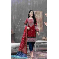 Buy 3PC Lawn Neckline Embroidered Shirt with Printed Chiffon Dupatta (D) in Pakistan at best price. Original product with fast delivery available.