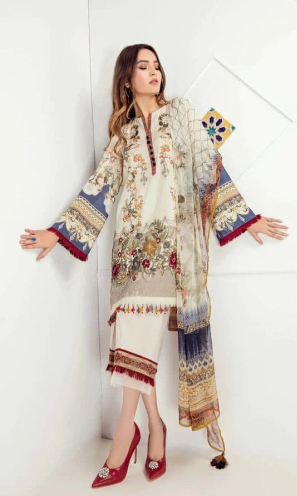 Buy Baroque 3-PC Lawn Embroidered Lawn Suit Monar Fancy Dupatta in Pakistan at best price. Original product with fast delivery available.