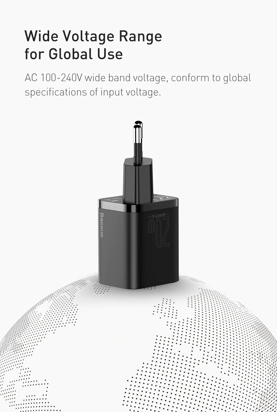 Specifications of Baseus 20W USB C Wall Charger – Mini Super Si USB Type C Charger with EU Plug(Cable Included), for iPhone 12/12 Mini/12 Pro Max/SE/11 Pro Max, Samsung Galaxy S10/S9 and More