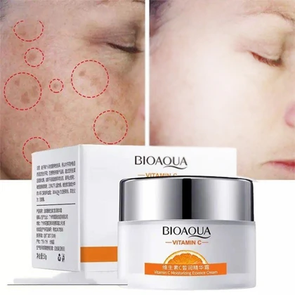• BIOAQUA Vitamin C Essence Moisturizing Cream The Vitamin C Essence Moisturizing Cream has a soft waxy texture, is light and easily absorbed, contains vitamin C and other ingredients, moisturizes and gentle, retains moisture in the skin, brightens skin tone, and makes it smooth.