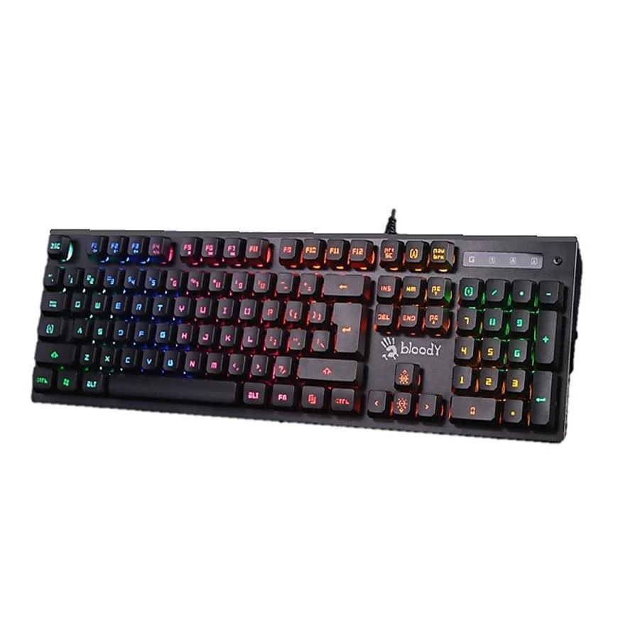 Specifications of Bloody B160N – Neon Backlit Gaming Keyboard – Metallic Aluminum Body – 1000Hz Report Rate – 1ms Key Response – Anti-Ghosting – Bloody KeyDominator Macros Software – Wrist Rest – Suspended Keycaps – Built-in 160K Memory – Anti-Slippery Lift-Black