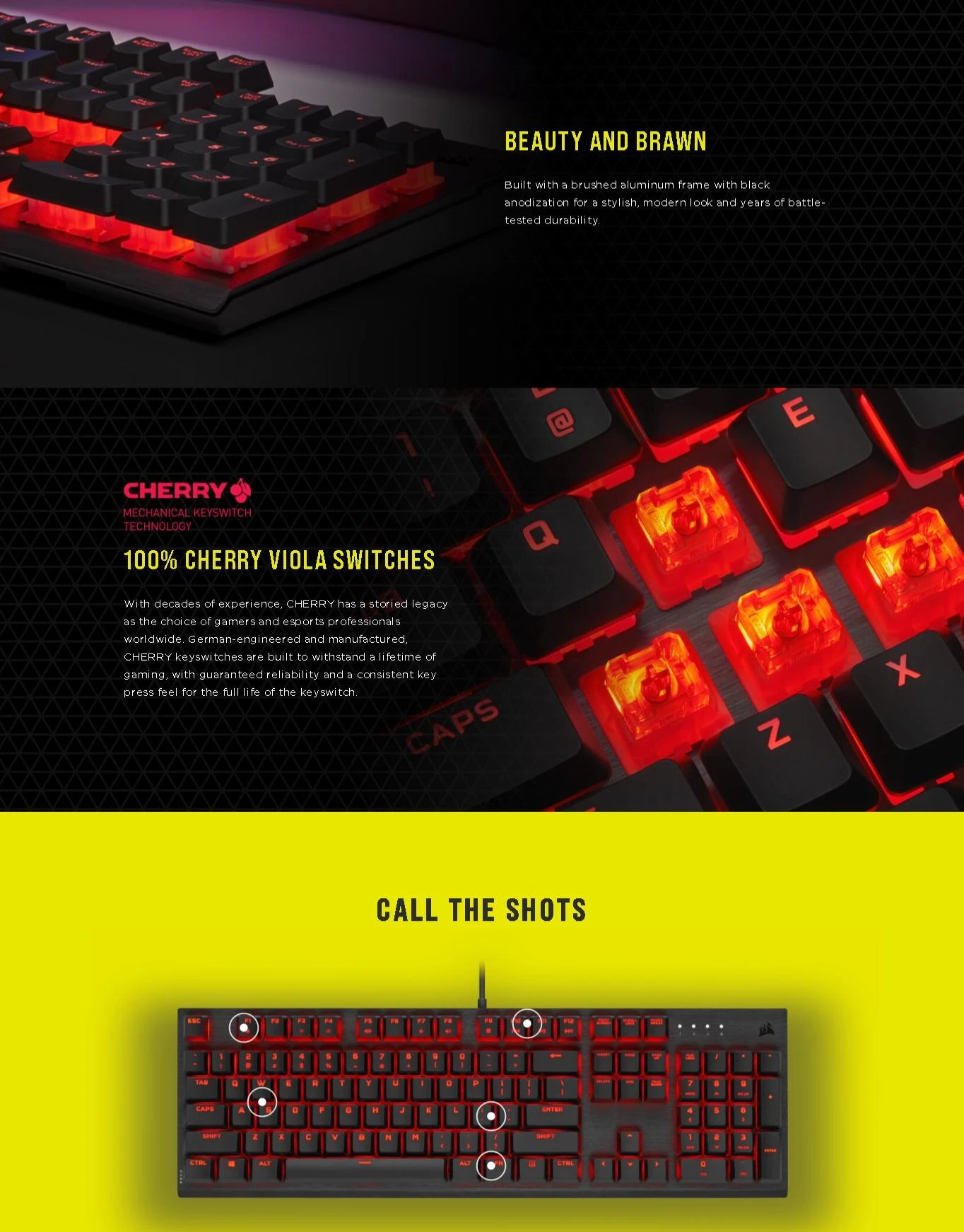 Specifications of Corsair K60 PRO Mechanical Gaming Keyboard — Red LED — CHERRY VIOLA — Black