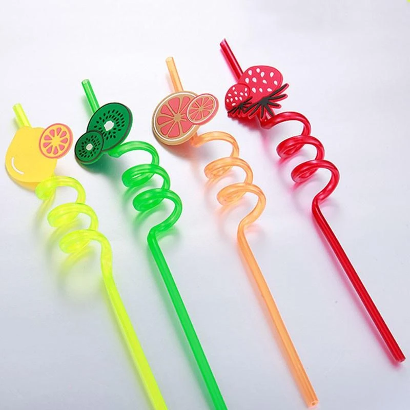 Funny Crazy Spiral Straws with Cute Charms, Fruit Drinking Straw, Reusable straws for kids , for birthday party , Assorted Colors, Pack of 4: