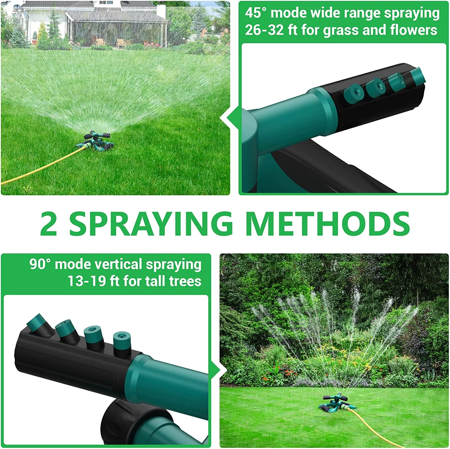 The three 360-degree rotating arms and 12 built-in nozzles can spin and cover a wide irrigation area.