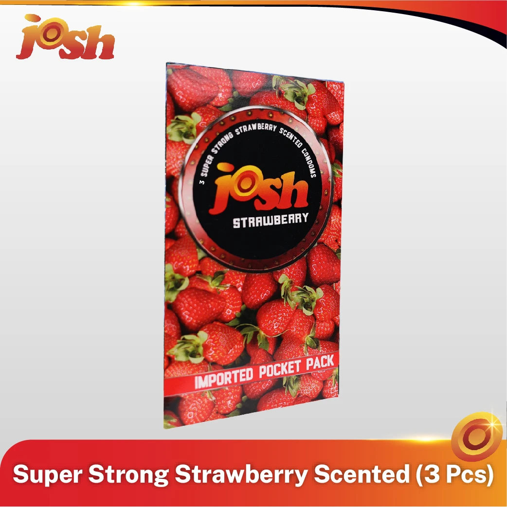 Josh Strawberry condoms, made with natural rubber latex, are gently lubricated and scented to increase pleasure for you and your partner.Rich strawberry scent which helps in avoiding distractions during the coupleβs moments of intimacy. Its bright red strawberry color brings playfulness in coupleβs special moments.