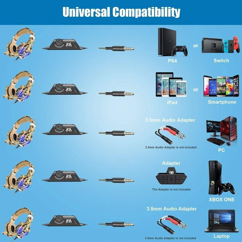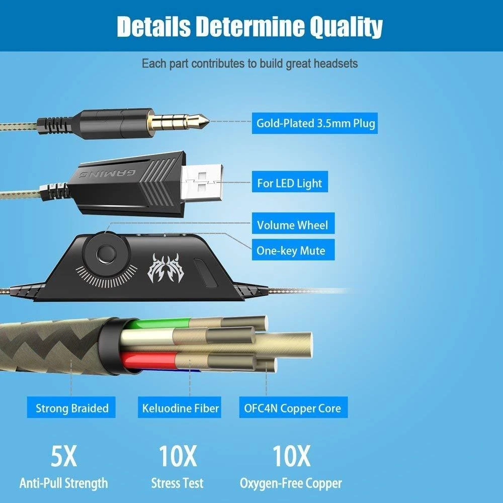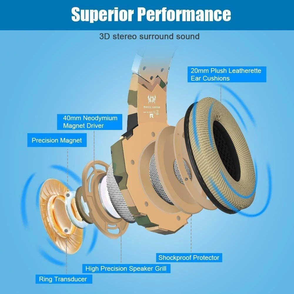 Specifications of Kotion Each G9000 Stereo Gaming Headset for PS4, PC, Xbox One Controller, Noise Cancelling Over Ear Headphones with Mic, LED Light, Bass Surround, Soft Memory Earmuffs for Laptop – Blue