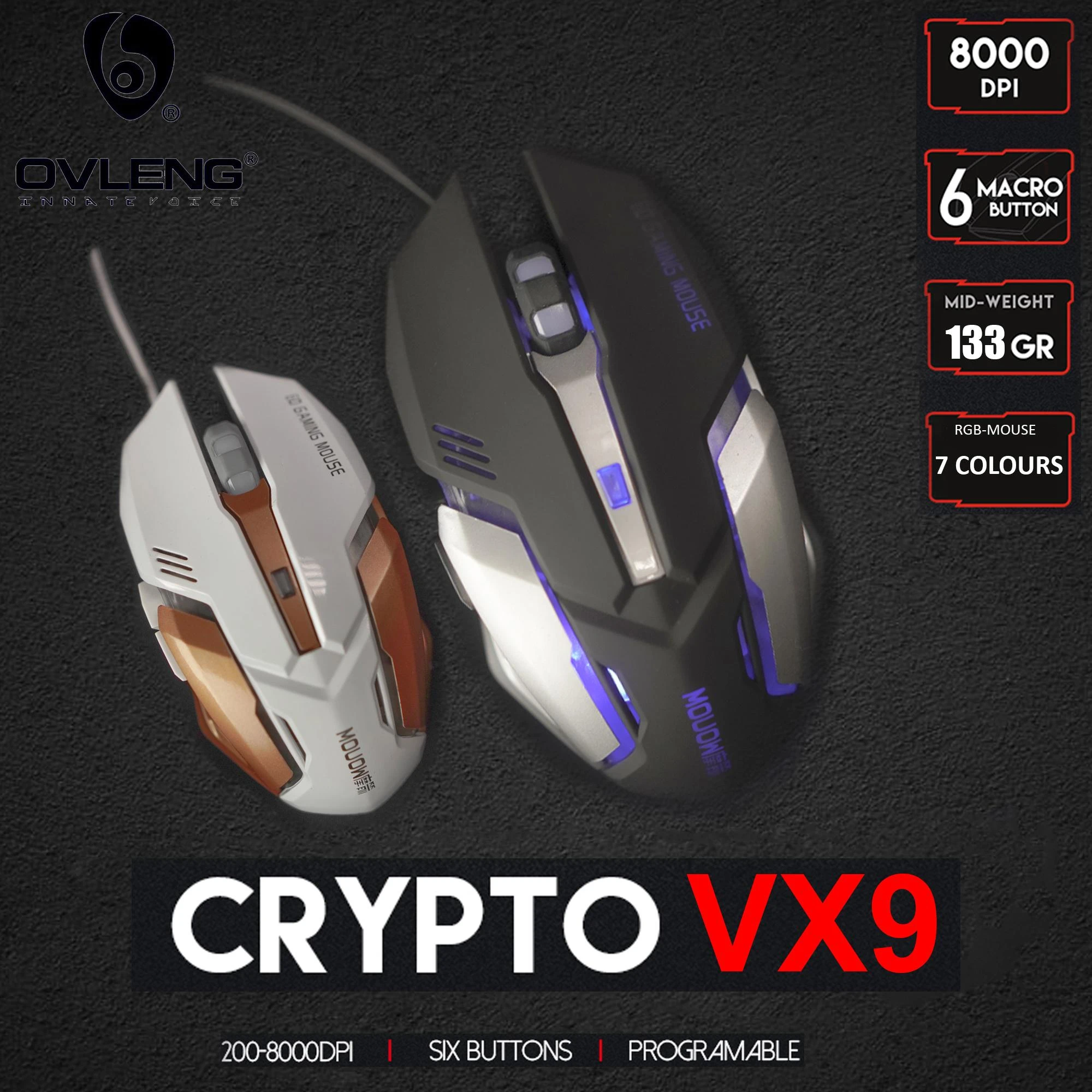 Buy Ovleng Crypto VX9 8000 DPI RGB Gaming Mouse with 6 Programmable Buttons for Pro Gamers in Pakistan at best price. Original product with fast delivery available.