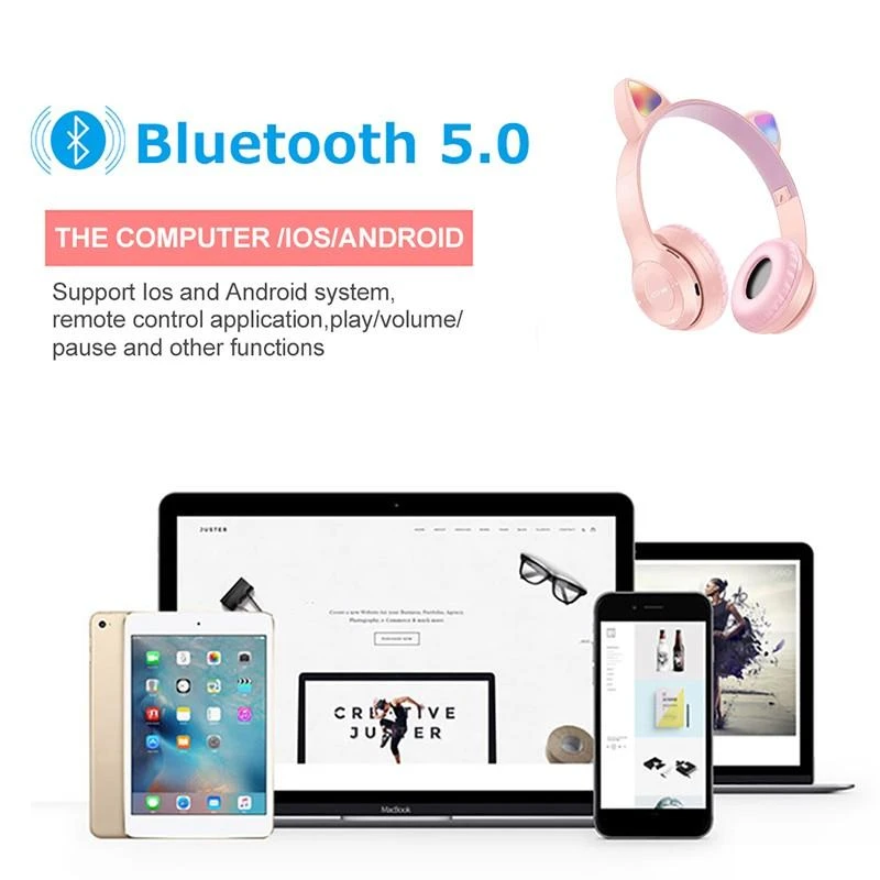 Specifications of P47 Cute Cat Ear Bluetooth Headset Wireless Over-The-Ear Headphones With Mic Noise Cancelling Kid Girl Stereo Music Headset Foldable