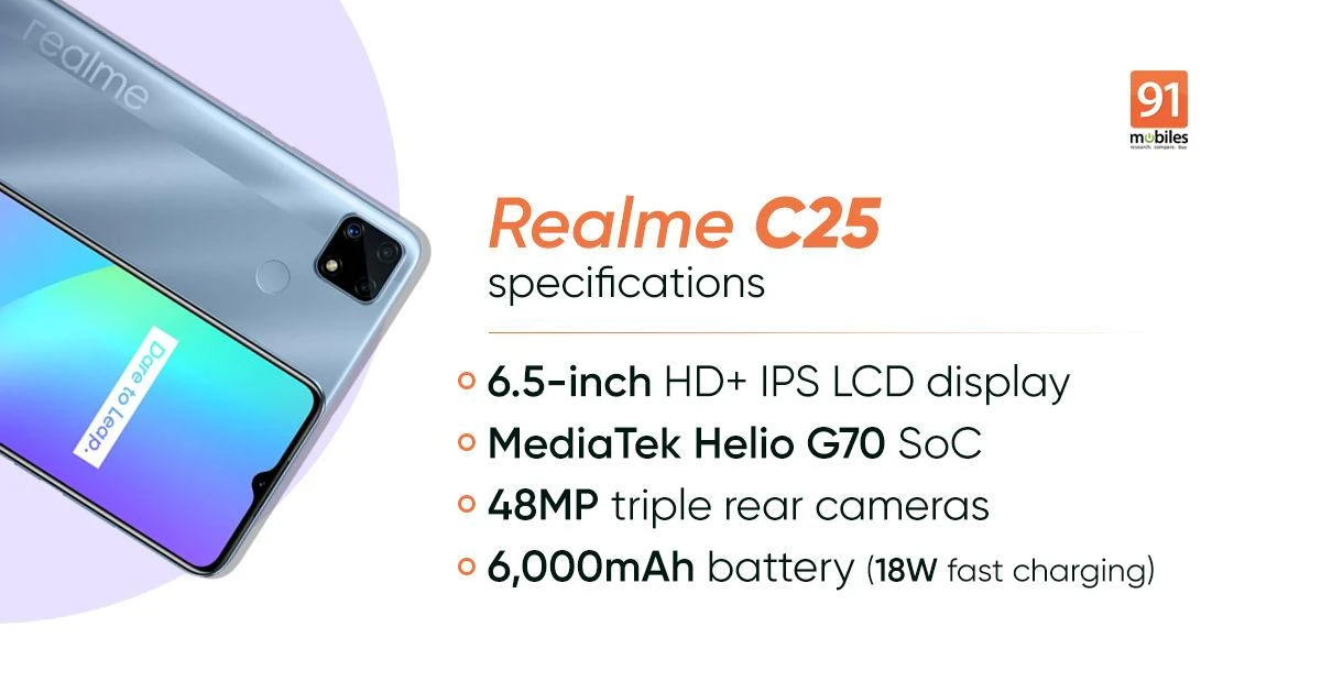 Specifications of Realme C25 128GB + 4GB 6000 mAh Battery 6.5″ Inch Display 8MP Selfie Camera