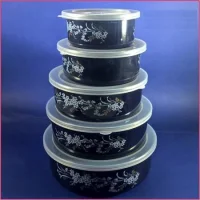 ?? These bowls come in Five different sizes. Each with a plastic lid to keep them air-tight. ?? Ensuring the freshness of their contents, lightweight and shiny. ?? They are dishwasher and freezer-safe, for easy cleaning and storage. ?? They are also easily stack-able. ?? They have varying diameters. ?? Perfect gift idea for any occasion.Can load with any kinds of liquids Can be place into Refrigerator Clean material, ??it is very health and environmental protection.Material: carbon steel and enamel coating ?? Thickness :0.4 mm Leak-Proof, Freezer-Safe & Durable ??