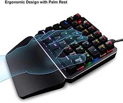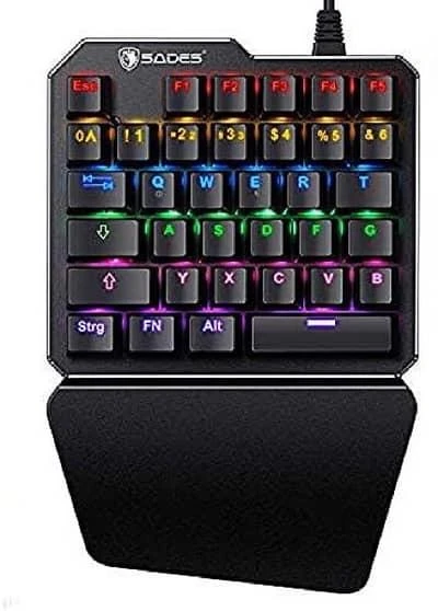 Product Description:Ergonomic Design with Palm Rest: SADES one-handed keyboard is designed with ergonomics which can reduce the fatigue.Keyboard with large hand palm rest area, allows you to use it with less strain.New button layout, fast and flexible operation, perfect for game playingBlack Switch, Real Mechanical Keyboard: Black Switches sound crisp, strong sense of rhythm, bring you the best mechanical experience.With a mechanical shaft design, the service life of the buttons can be increased to about 50 million times, and the performance is more powerful.LED Backlit: LED Backlight modes, multiple colors can be adjusted at will to enjoy.Itโs very cool, under the night, adding a sense of mystery.Backlit can be adjusted to the player’s desired color, supporting different cool dynamic lighting effects.You can create your own unique keyboard.Mini & Portable: 35 keys one-handed keyboard with portable design, that you can carry it with you everywhere at anytime, great for one hand control.Long life span and good wear resistance, braided wire with USB port, mechanical hand feeling, optimized layout, it easily meets your gaming requirements.Compatibility: SADES one-handed Gaming keypad is compatible with Windows XP, Windows Vista, and Windows 7, Windows 8, Windows10, MAC OS X ec