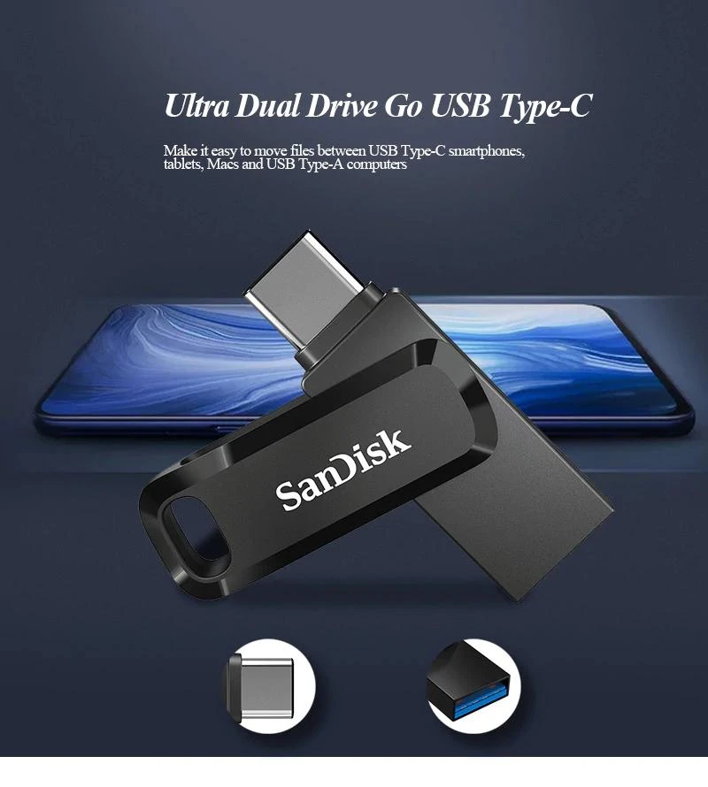 Product details of SanDisk OTG USB Flash Drive Ultra Dual Drive Go 32GB 64GB 128GB 256GB 512GB Ultra Dual USB3.1 Disk OTG Type-C Pen Drive for Smartphone Laptop