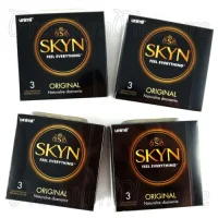 - SKYN® Original Non-Latex Lubricated condoms provide a Natural feeling experience with heightened sensitivity while being safe and suitable for people with latex allergy and latex sensitivity.