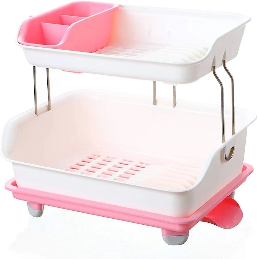 Product details of Two Tier/Layer Dish Rack, Multi-Purpose Dish Rack, Plastic Kitchen Racks, Rack Stand, Kitchen Rack For Plates Kitchen, Kitchen Sink Dish Drainer Drying Rack
