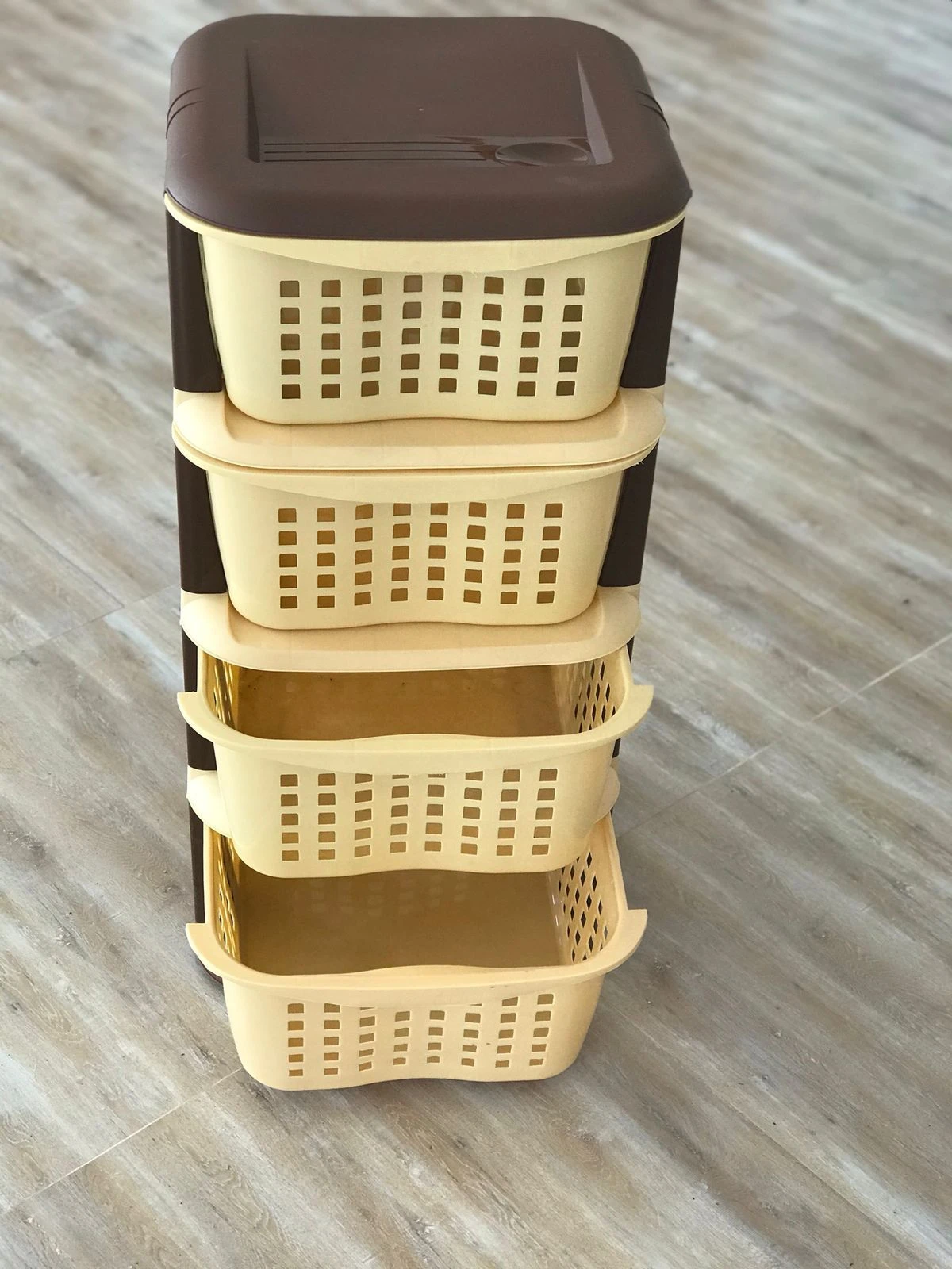 Material : Plastic No. Of Racks : 4 Spacious Racks Multipurpose Vegetable & Fruit Rack Good quality plastic Basket for different purposes. Can storage more than 5kg per rack
