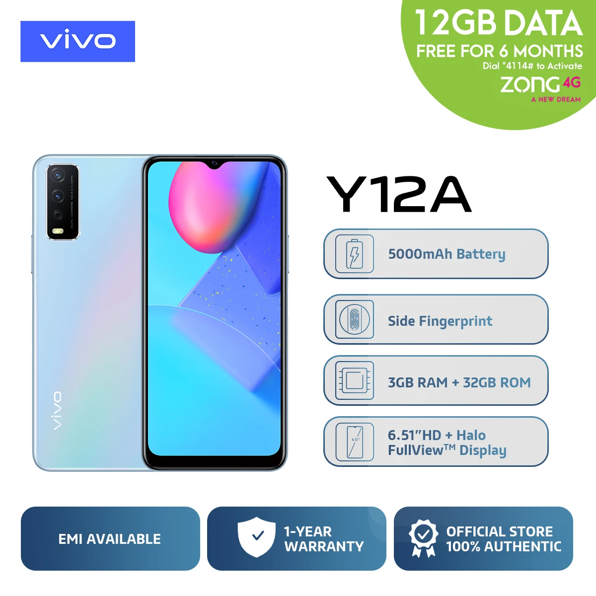 Buy Vivo Y12A 3GB 32GB in Pakistan at best price. Original product with fast delivery available.