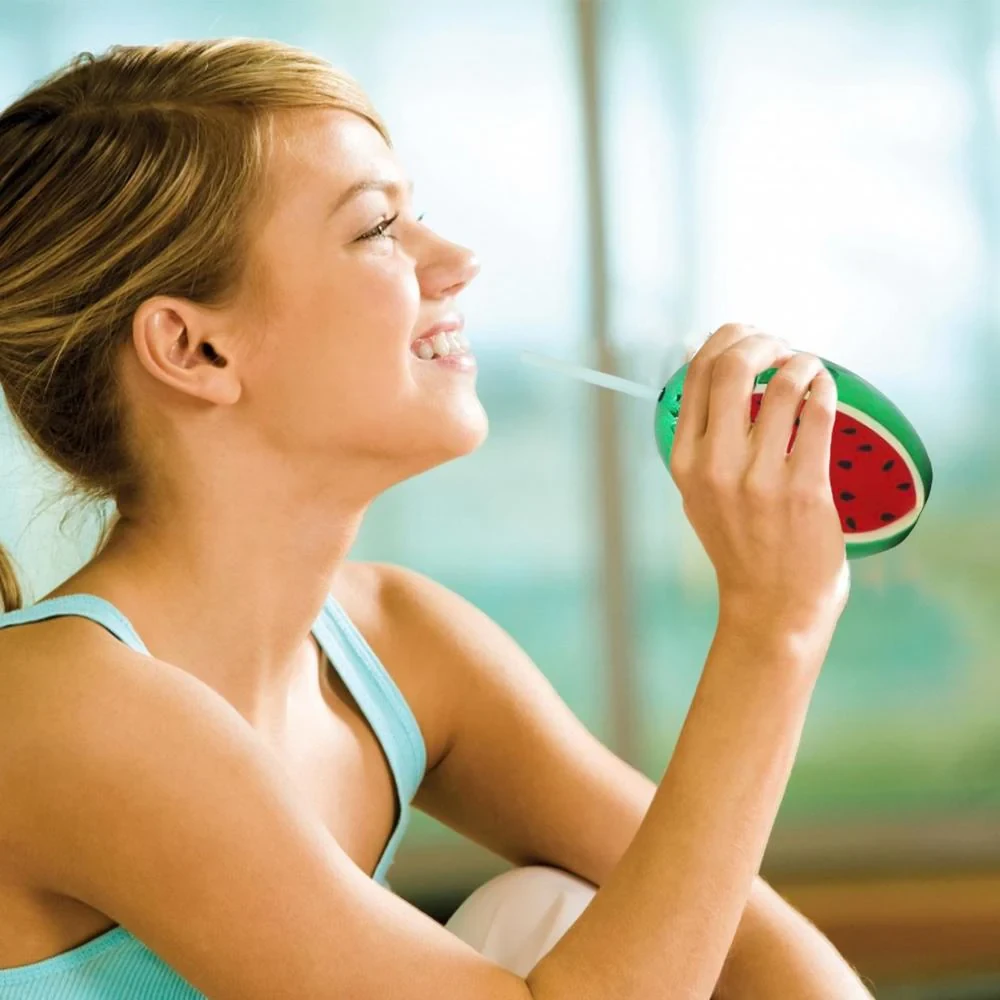 Stay hydrated on-the-go with our premium quality watermelon water bottle. Perfect for workouts or everyday use, this bottle comes with a convenient straw for easy sipping. Made with high quality materials, enjoy refreshing watermelon flavor anywhere you go.