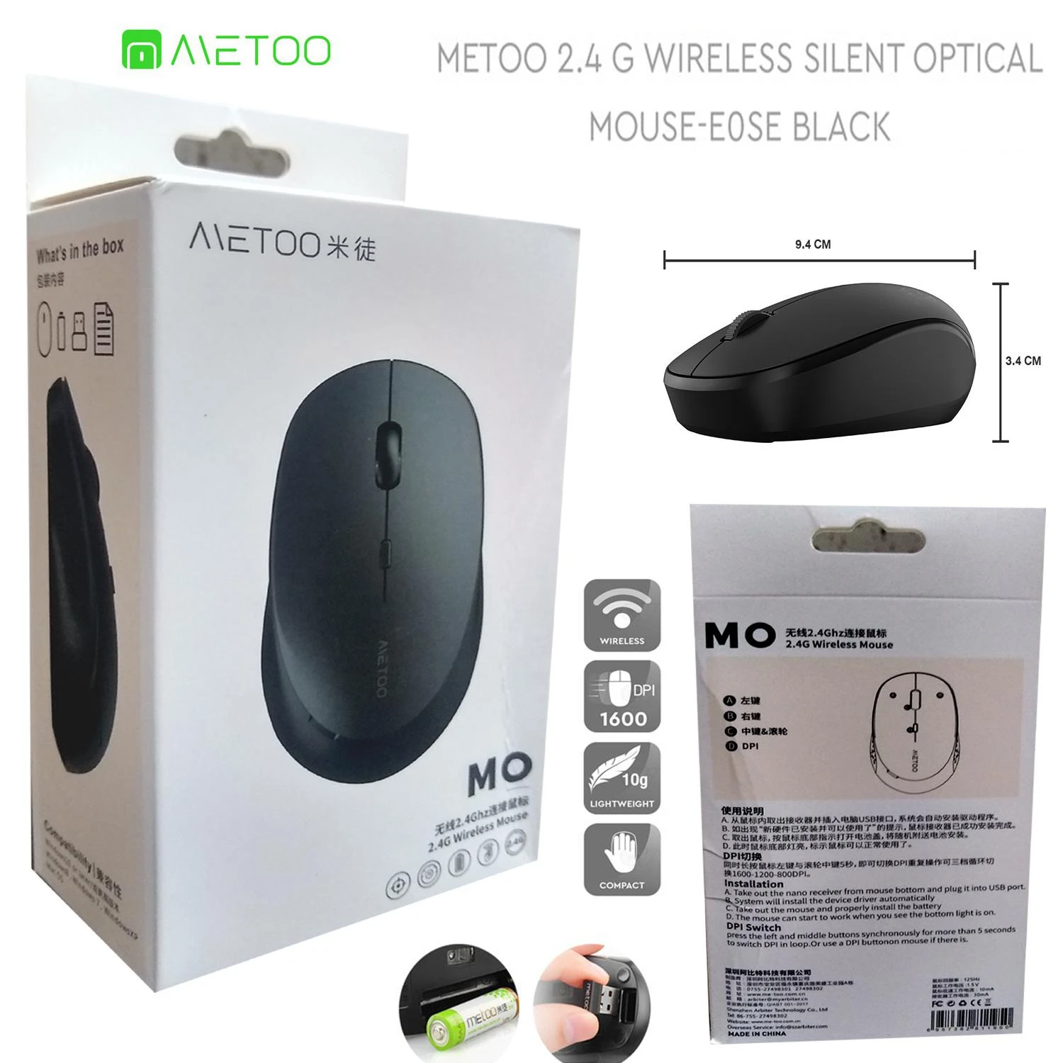 Whatβs in the box 1 metoo silent click wireless mouse