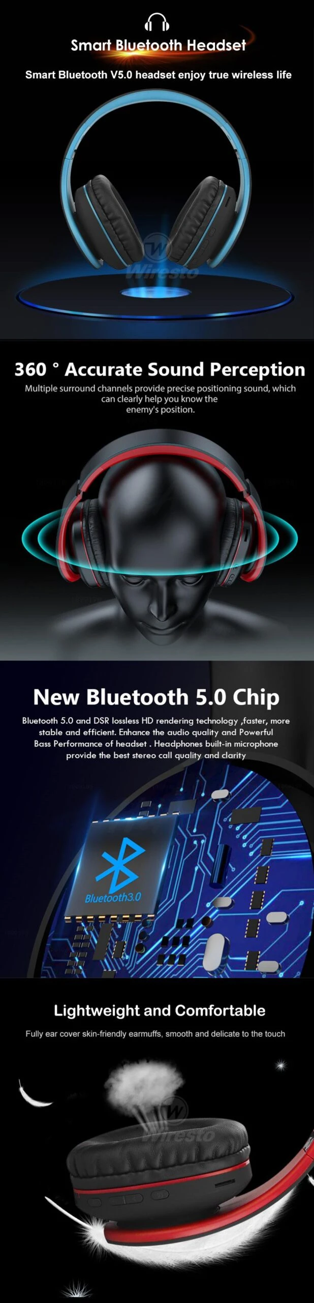 Product details of Wiresto Wireless Headphones Bluetooth 5.0 Bass Foldable Headset Over the Ear Headphone Audio Mp3 Portable Adjustable Earphones Gaming Headset Mic For Mobile PC