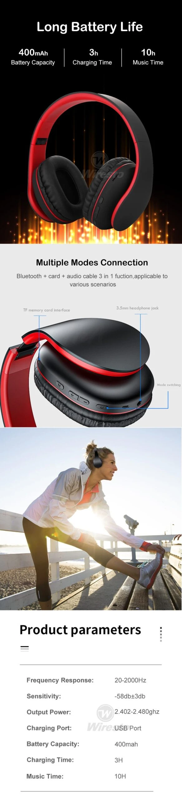 Specifications of Wiresto Wireless Headphones Bluetooth 5.0 Bass Foldable Headset Over the Ear Headphone Audio Mp3 Portable Adjustable Earphones Gaming Headset Mic For Mobile PC